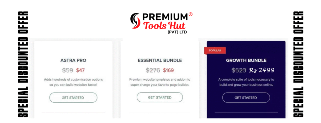 The Astra Pro Growth Bundle combines the full-featured Astra Pro theme, Ultimate Addons for Elementor & Beaver Builder, along with over 200+ starter templates, all offered under a genuine license with instant activation and lifetime updates Premium Tools Hut.